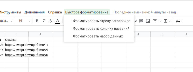 В своей Таблице вы можете щелкнуть меню "Быстрое форматирование", чтобы увидеть новые пункты меню: