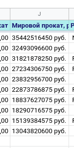 - Добавьте текст "Мировой прокат, рубли" в ячейку